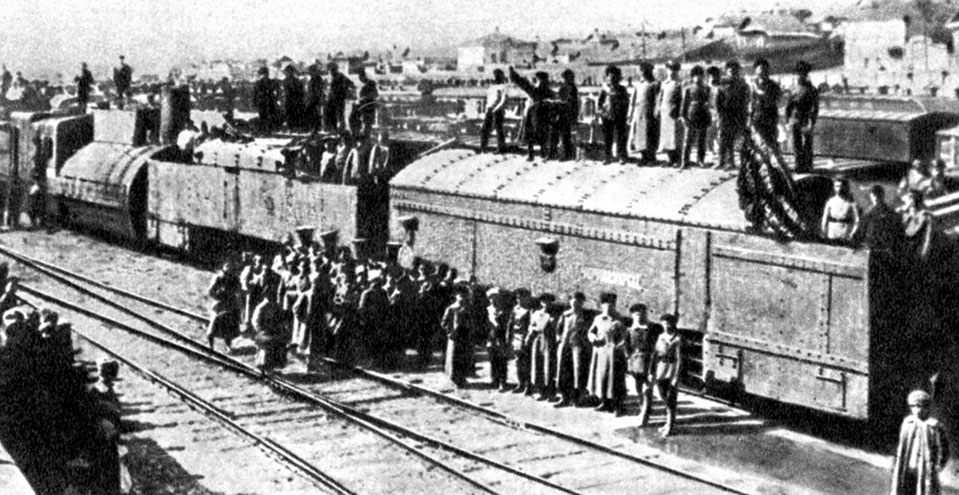 Бронепоезд "Черепаха", который участвовал в Ворошиловском походе и действовал под Царицыном в 1918 году