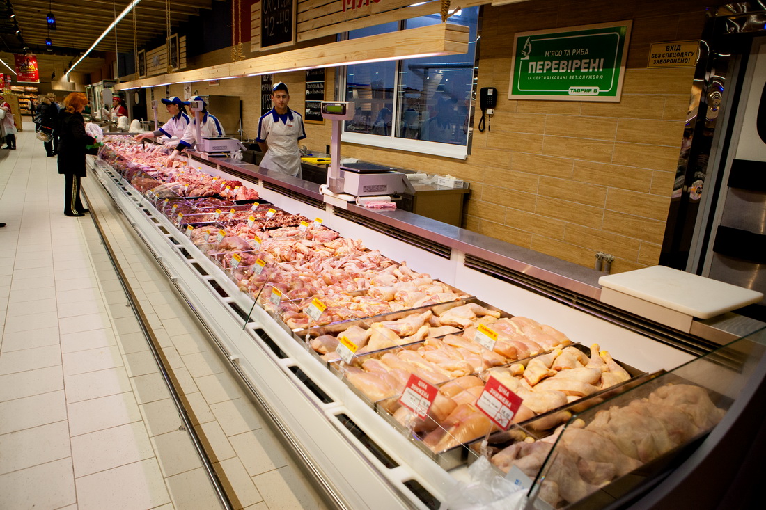 как в кулинарном магазине уральского провинциально 100-тысячного городка, в котором я жил в 70-х - 80-х годах. Только витрины в 2 раза короче. В кулинарных магазинах нашего городка было 2 отдела: мясной и кондитерский. Работники в этих отделах не пересекались, по понятны, санитарным, причинам. В мясном отделе продавали мясные полуфабрикаты: антрекот, лангет, бифштекс, котлеты, шницель, эскалоп, бефстроганов, поджарка, азу, гуляш, мясной фарш, пельмени, зразы, фрикадельки, да не упомнишь всего. Но точно как на твоей фотографии. Простое мясо в магазине стоило 1-95 говядина и 2-05 свинина. На базаре дороже 5 рублей за кг мясо не продавалось. Так вот, в кулинарии мясные полуфабрикаты стоили дороже чем простое мясо в магазине, но дешевле, чем парное мясо на базаре.